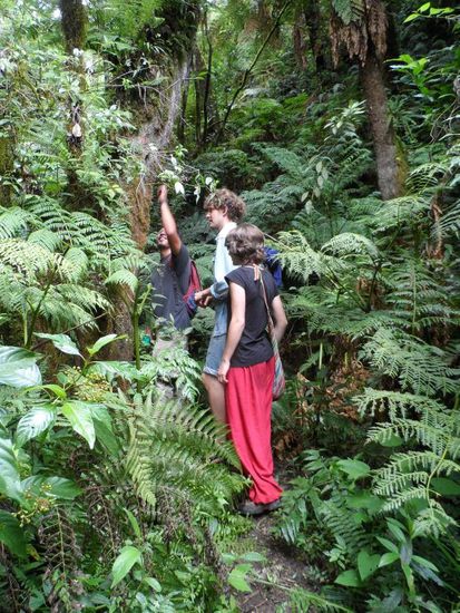 Die 6 stuendige Trekkingtour war echt super interessant. Zu den Hauptdarstellern gehoeren gigantisch grosse Farne. Aber besonders genial war unser Guide der uns super viel ueber die div. Pflanzenarten erzaehlt hat. Der Weg war zwar nicht gerade einfach aber es war es auf jeden Fall wert. Am Anfang haben wir uns noch die Muehe gemacht vor rutschigen Stellen zu warnen, aber nach ein paar Minuten haben wir es einfach sein gelassen weil es einfach ueberall rutschig war und sich jeder mindestens einmal hingelegt hat.