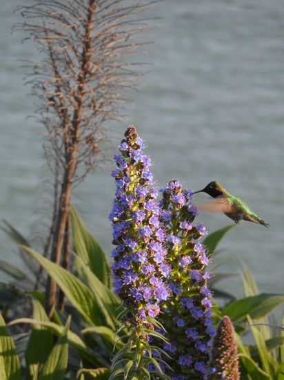 Und dann kommt doch tatsaechlich ein Kolibri vorbeigeflogen. Krass damit haette ich hier nun echt nicht gerechnet. Leider war er ziemlich schnell wieder verschwunden. Aber ein Kolibri Foto, evtl. sogar mit der Bruecke im Hintergrund wollte ich mir natuerlich nicht entgehen lassen. Also fleissig warten waehrend mir fast die Finger abgefroren sind. Der Kolibri hat sich auch noch ein paar Mal gezeigt, aber fuer ein Foto mit der Bruecke hat es leider nicht gereicht.