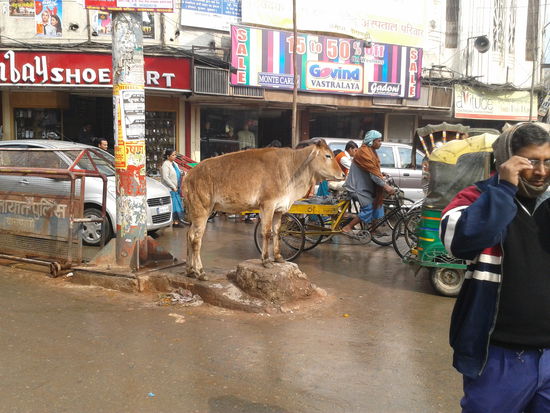 Wir kämpften uns durch die verschmutzten und mit Menschen vollgestopften Straßen. In Varanasi ist alles ein wenig schmaler. Das machte sich auch durch den viel höheren Lärmpegel bemerkbar. Zudem kommt noch, dass alles hupte und klingelte - auch die Fahrradrikshas.