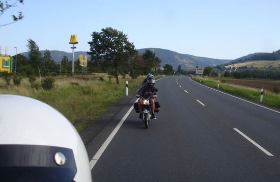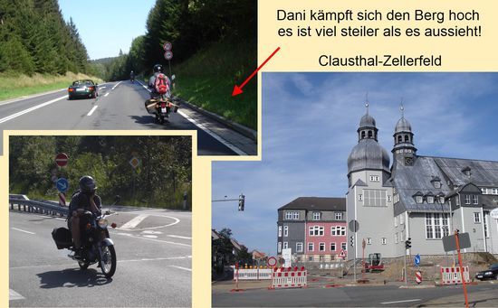 Von Osterode ging es dann endlos hoch nach Clausthal-Zellerfeld. Hier zeigte sich erstmals der deutliche Leistungsunterschied zwischen 50 ccm und den zwei 70 ccm Schwalben. Theo und ich warteten oben auf Dani.