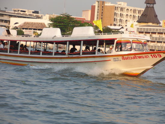 Um uns einen Überblick über Bangkok zu verschaffen, beschließen wir zum Fluss zu laufen und eine Bootstour auf dem Menam Chao Phraya River zu machen. Die Fahrt auf dem Fluss ist angenehm und wir bekommen ein Gefühl für die Größe Bangkoks.