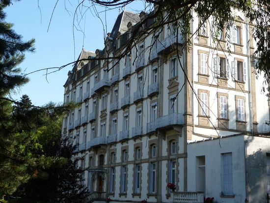 Nachdem wir uns häuslich eingerichtet haben, unternehmen wir einen kurzen Spaziergang ins Städtle. Saint-Nectaire ist eine ehemalig Kur- und Thermalstadt und hier findet sich auch der berühmte Käse, der in den Vulkankellern reift. Teilweise große, mondäne Hotels sowie ein Casino künden von glanzvolleren Zeiten. Saint-Nectaire besteht aus zwei Ortsteilen. Le Bas - also unten im Tal und Le Haut, in dem sich auch ein Wahrzeichen des Ortes befindet. Die ehemalige Wallfahrts- und Prioratskirche Notre-Dame-du-Mont-Cornadore.