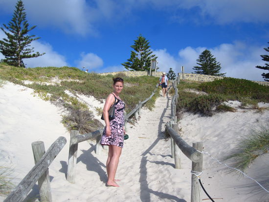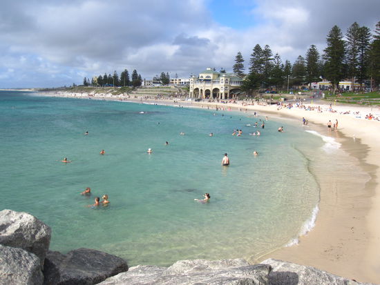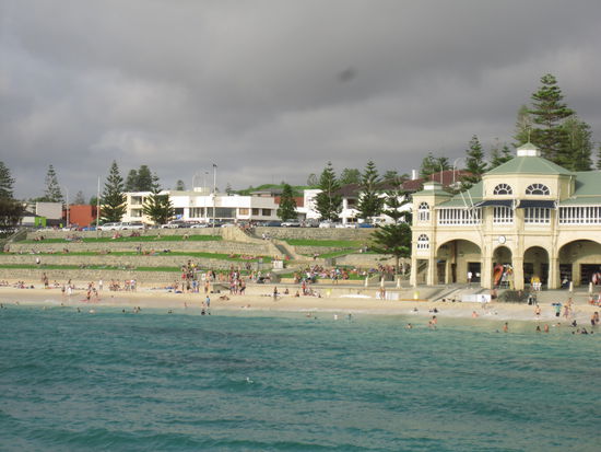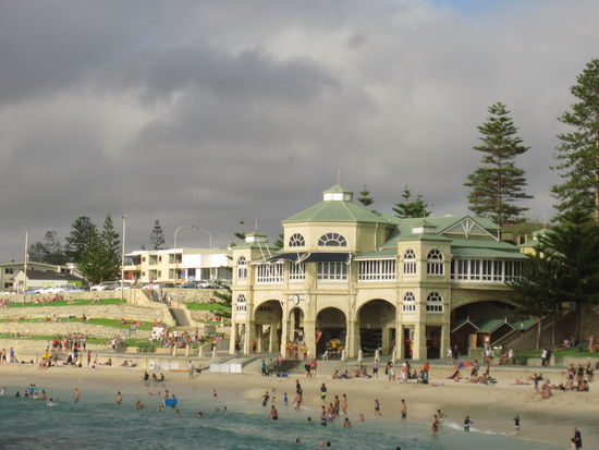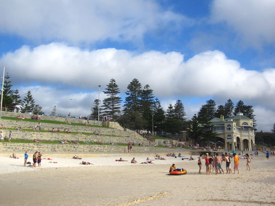 Wer je in Perth war, kennt sicher auch den bekannten Cottesloe Beach. Vor Straenden kann sich Australien sicher kaum retten, aber dieser hatte ganz besonderen Charme: mit Terrassen aus gruenem, gemuetlichen Gras, mit einem netten GEbaeude in der Mitte und der Moeglichkeit, schwimmen zu gehen, ohne von 15 Surfboards bei der naechsten Welle ueberrollt zu werden. Nice.
