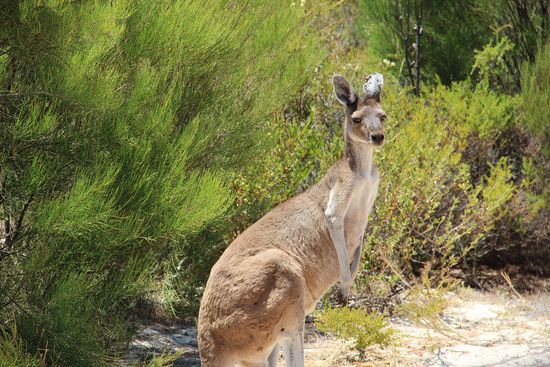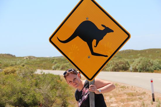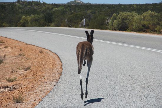 Es war eine lange Fahrt fuer europaeische Verhaeltnisse. Fuer Australier waeren die Pinnacles eigentlich gleich um die Ecke von unserem Hotel. Nach 3-stuendiger Fahrt auf einer Strasse, die immer nur geradeaus ging, wurden wir, gerade im Nationalpark angekommen, von dem australischen Klassiker begruesse - immer wieder schoen!!!
