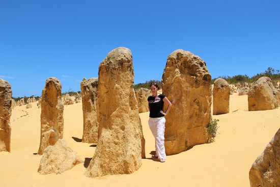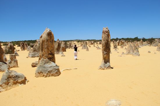 Und dann kam endlich mein persoenliches Highlight im Westen des Traumlandes: die Pinnacles, Kalksteinsaeulen, die wie von Riesen hingeworfene Speere aus dem Boden ragen.