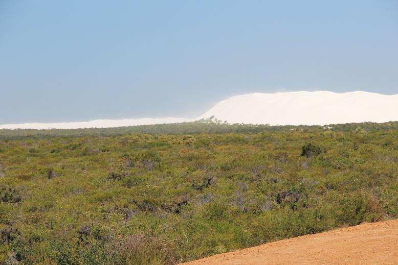 Und weil Australien nicht Australien waere, wenn nicht schon der Weg das Ziel waere bzw ein Highlight auf das naechste folgen wuerde, gab es gleich neben dem Nationalpark noch eine riiiiiiiiiiesige Sandduene -ebenfalls wie ins Land geworfen (oder gepustet)...