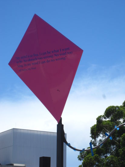 in das Kunstviertel, wo ich von einem kreativen Drachen begruesst wurde... eine der vielen liebevollen Kleinigkeiten, die ich so an Australien liebe...