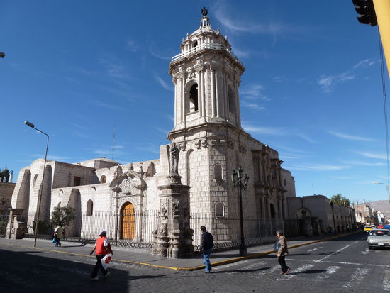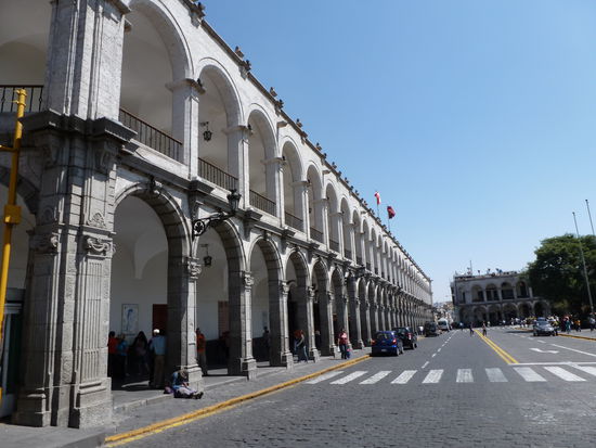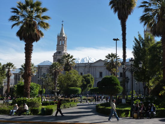 Arequipa ist die zweitgrößte Perus, liegt auf ca. 2300m.ü.M hinter der Stadt erheben sich 3 Vulkanen Chachani (6.075 Meter hoch), El Misti (5.822 Meter hoch) und Pichu Pichu (5.571 Meter hoch) eine tolle Kullisse. Die vielen tollen Kolonialbauten sind hier aus sehr hellem Vulkangestein gebaut deswegen wird Arequipa auch "die weiße Stadt" genannt. Das Stadtzentrum ist seit dem Jahr 2000 Weltkulturerbe und man kann hier Tage verbringen nur mit durch die Gassen schlaendern und die schoenen Gebaeude anschauen. Fuer mich ist es eine der schoensten Staedte und ich fuehle mich hier auf anhieb wohl.