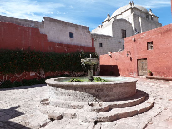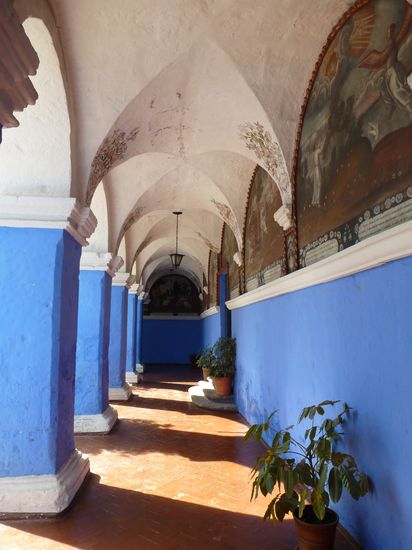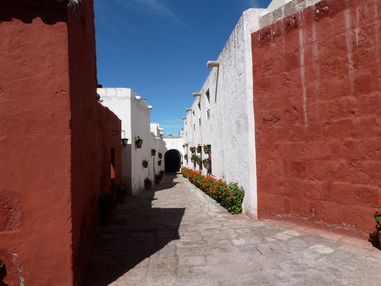 Ein weiterer Besuchermagnet der Stadt ist das Kloster Santa Catalina. Ich bezahlen einen Eintritt von 35 Sol und schlendere durch diese Welt. Das Kloster besteht auf über 20 000 m2 Fläche und wird als "Stadt in der Stadt" bezeichnet. Bis vor ein paar Jahrzehnten war die Anlage von der Aussenwelt abgeschottet. Die Novizinnen (Nonnenanwerterinnen) waren meist Töchter aus reichen spanischen Familien. Sie mussten eine Probezeit durchlaufen und eine Prüfung für die Aufnahme ablegen. Weiter musste eine hohe Mitgift bezahlt werden um überhaupt ins Kloster eintreten zu dürfen. Sie lebten in grossen Zimmern in welches sie lediglich 25 Gegenstände aus ihrem früheren Zuhause mitnehmen durften (dazu gehörten auch Möbel).