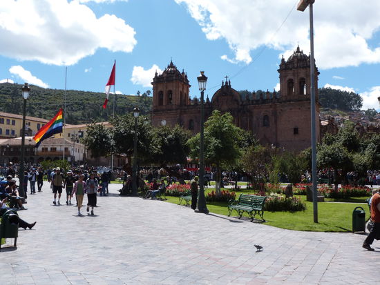 Mit dem Nachtbus ging es von Nasca ueber eine sehr kurvige Strasse nach Cusco. Die einst wichtigste Inkastadt (Qosco ist Quechua und bedeutet "Zentrum" und wier auch als Nabel der Welt bezeichnet), die allerdings komplett durch die spanischen Kolonialherren ueberpraegt ist, liegt auf etwa 3400 m Hoehe und die Luft ist hier schon um einiges duenner. Hab ich schon erwaehnt, wie schoen es hier ist? Das denken sich wohl auch andere Touristen, jedenfalls ist es auch die touristischte (??) Stadt, die ich bisher gesehen haben...wenn man durch die Strassen geht, vergehen keine zwanzig Sekunden, bis man das erste Mal angesprochen wird, ob man nicht eine Sonnenbrille/eine Massage/ein selbstgemaltes Kunstwerk/ein gutes Mittagsrestaurant/eine Muetze gebrauchen kann. Davon abgesehen,...ja, davon abgesehen ist Cusco schoen und ein magischer Ort, viele bleiben hier fuer laenger haengen.