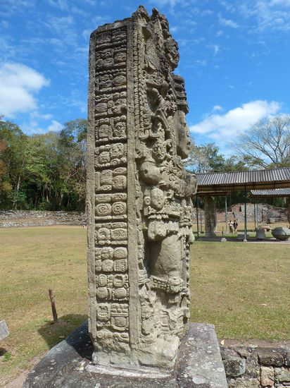 Im Tal des Río Copán erstreckt sich auf einer Länge von rund 20 Kilometern ein wahres Netzwerk von steinernen Stelen. Die von den Maya lakam tuun ("Großer Stein") genannten Pfeiler tragen an allen Seiten Verzierungen, Gravierungen oder Inschriften, die über das Leben der dargestellten Könige oder deren Handlungen berichten. Vor der Errichtung mussten die Bewohner die tonnenschweren Steinpfähle oft erst steile Berghänge hinauf transportieren. Aufgestellt wurden die Stelen meist zu kalendarischen oder politischen Jubiläen.