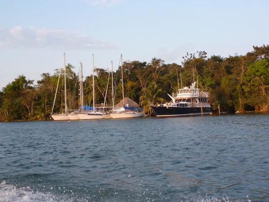 Von Livingston geht es mit dem Boot nach Rio Dulce (am Lago de Izabal der grösste See in Guatemala und die einzige Verbindung zur Karibiksee) eine schöne 2 stündige Bootsfahrt wobei wir an mit Vögeln beladenen Bäumen und Booten, an Dörfern und vielen Segelbooten vorbei fuhren. Es gab auch einen Halt bei warmen Quellen wo wir kurz unsere Füsse baden konnten. Eine gemütliche Bootsfahrt aber nichts spaktakuläres. Ich bin sehr erstaunt über die vielen und riesegen Segelschiffe die hier überall ankern, mein erster Eindruck von Guatemala ist das die Leute hier reicher sein müssen als im Rest von Zentralamerika. Ich werde aber schnell des besseren belehrt dass die meissten Boote pensionierten Amis gehören die hier rumgammeln.
