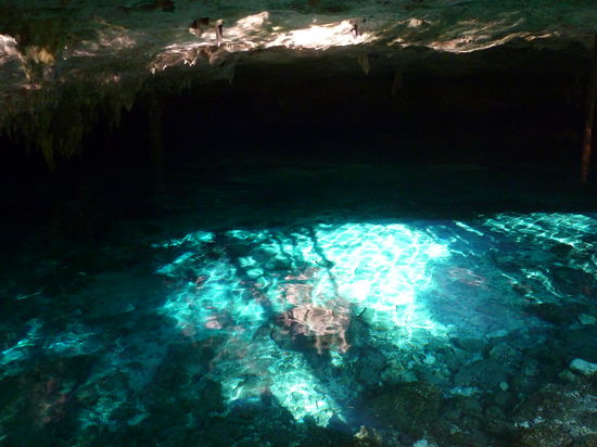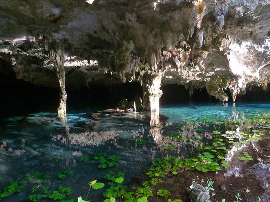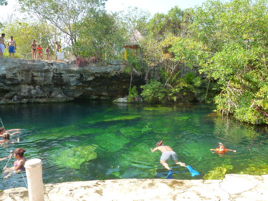 Um Tulum gibt es auch einige Cenotes das sind Kalksteinlöcher die durch den Einsturz einer Höhlendecke entstanden und mit Süßwasser gefüllt sind.