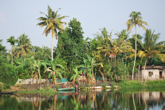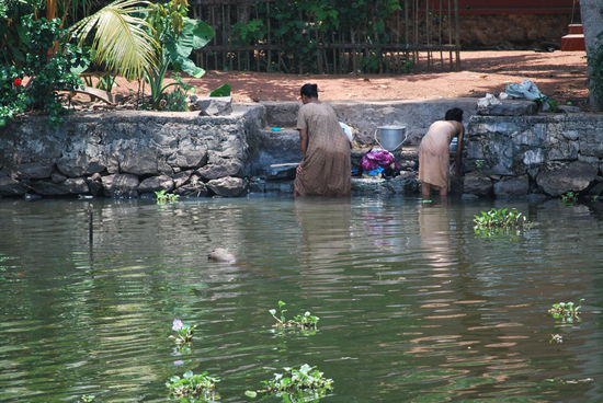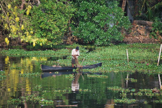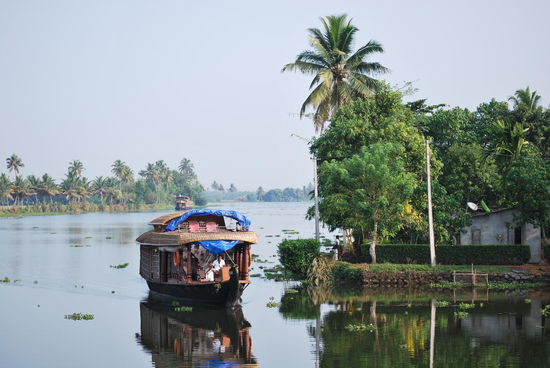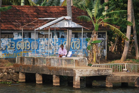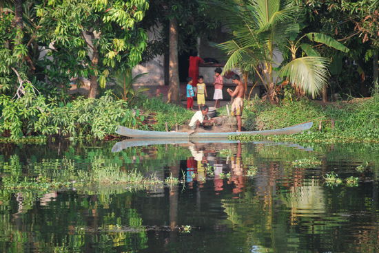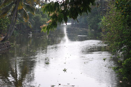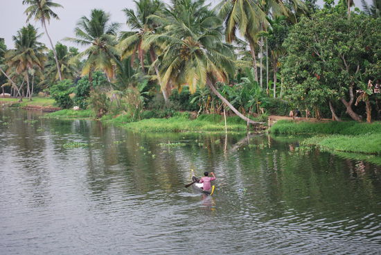 Die nächsten fast 24 Stunden sind jetzt total ereignislos. Ich ruhe mich aus, geniesse das Treiben in den backwaters, fotografiere wie eine Wahnsinnige, esse so gut wie nichts, werde mit super-eklig schmeckendem Ayurveda-Tee aufgepäppelt, kann zwischendurch mal von Bord, um Cola zu kaufen und lasse einfach nur die Eindrücke der atemberaubend schönen Landschaft auf mich wirken. Die Crew macht immer wieder einen Versuch, mich zum Essen zu bringen, aber ich mag nicht, obwohl alles, was sie zaubern, total lecker aussieht.