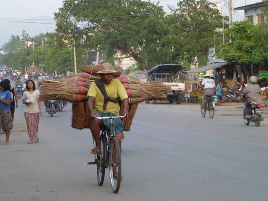 Der erste Gang durch das Örtchen: Ja, hier gefällt es mir richtig gut! Nette Lokale, ruhige Atmosphäre. Genau das was ich nach dem staubigen Mandalay brauche. Mal erst einen Happen gegessen und da habe ich die Holländer vom Flughafen wiedergetroffen. Sie sind seit gestern hier. Und abends beim Essen, welch eine Freude, habe ich auch Romeo aus der Schweiz wieder getroffen. Collin ist auch noch hier, fährt aber morgen weiter. Wir haben uns dann mal direkt für morgen früh 05.30 Uhr mit Fahrrädern verabredet, dann geht es zum Sonnenaufgang auf die Pagodenfelder. Ich bin so gespannt. Seitdem ich diesen Platz einmal im Fernsehen gesehen habe, möchte ich hierher kommen!