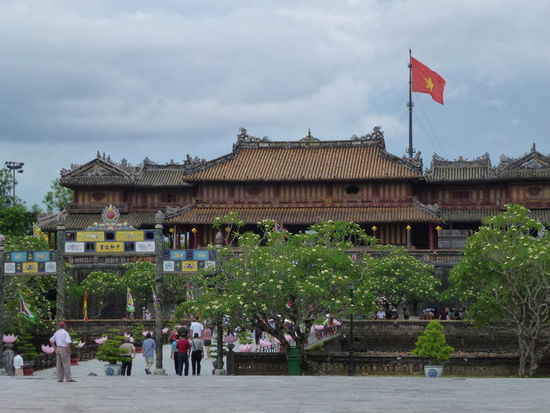 Als der Bus bei Sinh Tourist in Hue hielt, kamen natürlich die Schlepper wieder in Scharen an. Sie ließen einen noch nicht mal aus dem Bus aussteigen. Ich habe höflich mitgeteilt, dass ich kein Hotel benötige, rein in die Agentur, großes Gepäck abgelegt und nach dem Weg zur Kaiserstadt (Zitadelle) gefragt, hier kriegte ich nur einen Fingerzeig in eine Richtung.