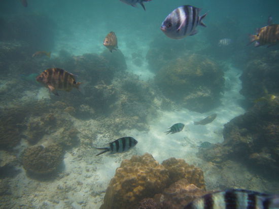 Das Schnorcheln hat Spass gemacht, kaum Wellengang am Riff, gute Sichtverhältnisse, und es zeigten sich Kaiserfische, Papageienfische, Seegurken, Seeigel, Kartoffelbarsche und einige mehr, dessen Namen ich so auswendig nicht weiß.