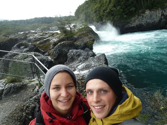 Ein Halt bei den Saltos del Petrohue lohnt sich auch. Rasante Wasserfaelle stroemen das durch Lava geformte Gestein herunter. Den Vulkan Osorno haben wir leider nicht gesehen, weil es zu bewoelkt war, normalerweise ein Aushaengeschild der Gegend.