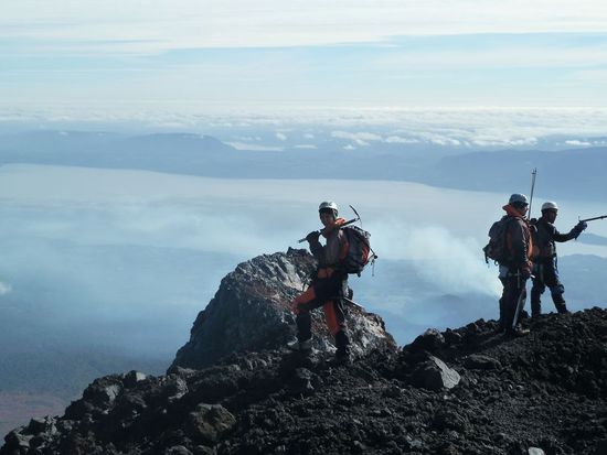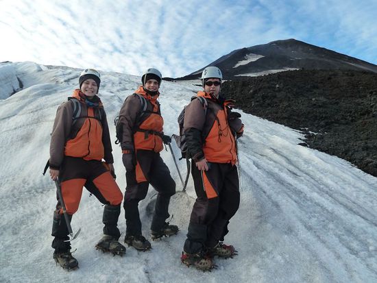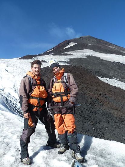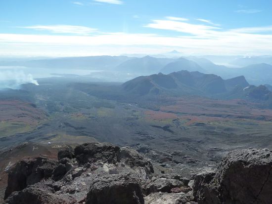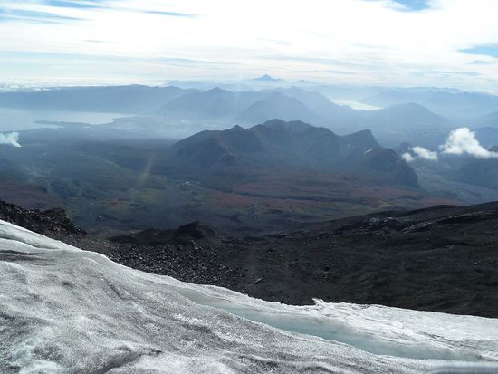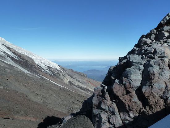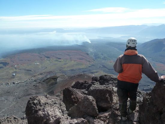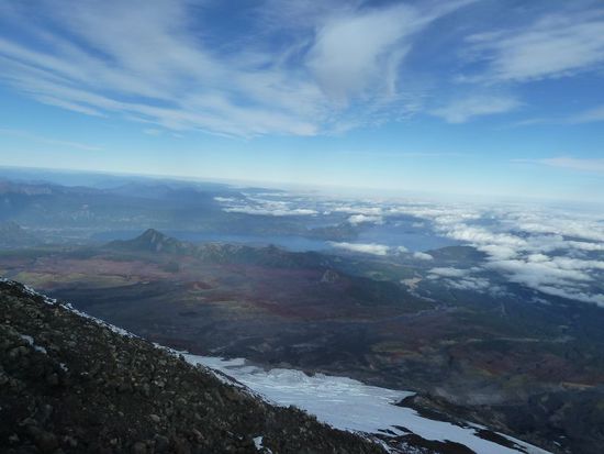 Im sehr gemuetlichen Hostal Paradise Pucon fanden wir Unterschlupf, die Atmosphaere war sehr familiaer. Pucon kommt Queenstown sehr aehnlich, man kann alle moeglichen Outdooraktivitaeten unternehmen. Am ersten Tag gingen wir nur in der Stadt umher und zu einem Insidertip um dort ein wenig zu bouldern. Am zweiten Tag erklommen wir den Vulkan Villarica, nicht ganz 3000m hoch. Wir hatten herrlichstes Wetter, was uns einen unglaublichen Blick ueber das Land bot. Alle 7 Vulkane der Region waren zu sehen, dazu die erhaerteten Lavafluesse vom letzten Ausbruch und die sich im Herbst wandelnden Waelder.