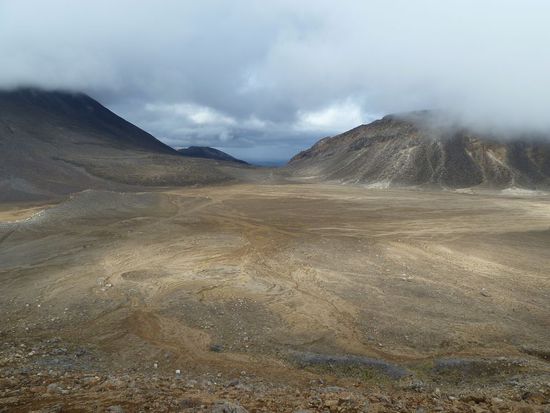 Da oben ist es ein staendiges An- und Ausziehen, dem Wetter entsprechend. Eigentlich wollten wir ja auf den Togariro Summit raufkraxeln, aber Nebel und Wolken haetten die Aussicht von oben nicht zugelassen. Schliesslich erreichten wir den Red Crater, der ziemlich fein ausschaut. Es riecht total nach Schwefel dort.