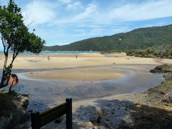Voller Vorfreude auf neue Entdeckungen warteten wir auf schoenes Wetter um eine 2-Tagestour im Abel Tasman National Park zu machen. Wir fuhren mit dem Boot nach Awaroa, wo wir an einem einsamen Strand ausgesetzt wurden und zuerstmal den Weg suchen mussten.