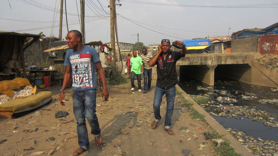In Surulere lebt die untere Mittelschicht der Stadt. Am Straßenrand vor den Häusern werden Kinder gewaschen und auch hier gibt es den für diesen Teil der Erde typischen offenen, teilweise gedeckelten Abwassergräben in die alles Mögliche hinein gekippt und geworfen wird. Mülltonnen gibt es nicht. Natürlich gibt es in einer Stadt von diesen Ausmaßen auch eine Müllabfuhr, jedoch muss man wissen, wann der Müllwagen die Straße passiert und dann seinen Müll direkt dort hinein werfen. Was mir noch auffällt ist, dass an vielen Hauswänden ein Hinweis aufgesprüht ist, der das Haus als unverkäuflich ausweist. Manchmal auch mit dem Zusatz, dass man sich vor 419 in Acht nehmen solle. 419 bezieht sich auf den Paragraphen, der im nigerianischen Strafgesetzbuch Betrugsdelikte behandelt und bei uns in Europa vor allem durch Vorschussbetrug, der so genannten Nigeria Connection bekannt wurde. Immobilienschwindler zwingen Grundbesitzer und Hauseigentümer, ihr Haus durch eine entsprechende Kennzeichnung vor illegalen Verkäufen zu schützen. Der Trick: In Abwesenheit der Eigentümer werden Scheinbesichtigungen durchgeführt und in späteren Verhandlungen zwischen den Betrügern und Interessenten die Liegenschaft verkauft. Die verzwickte Rechtslage in Nigeria ist diffus, so dass der Nachweis über die tatsächlichen Eigentumsverhältnisse manchmal unmöglich ist.