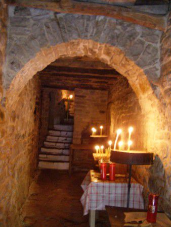 Beruhigt brechen wir zur Besichtigung des Klosters Moni Panagia Spileotissa auf, das unten am Fluss liegt. Nachdem wir das Auto an einer Schranke abgestellt haben, folgen wir einem Fußweg durch eine wunderbare Auenlandschaft bis zum Kloster, das man auch von innen besichtigen kann. Vom Glockenturm hat man einen grandiosen Ausblick auf die Flusslandschaft.