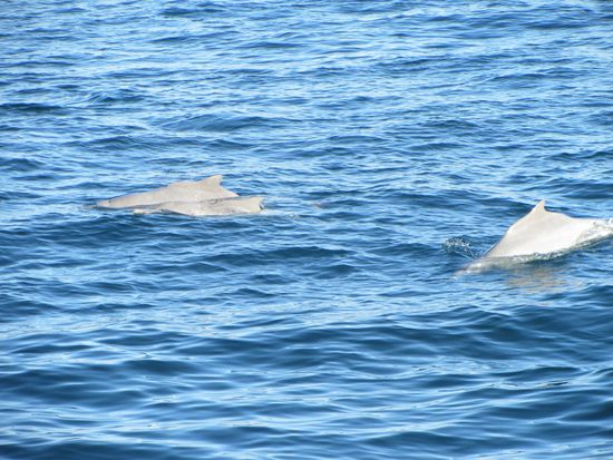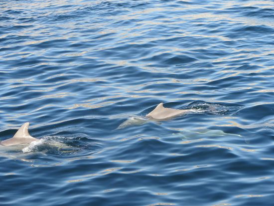 Zurück zur Bootstour. Wie schon gesagt, wir fuhren eine Weile in den Fjord, machten einen Halt und ... plötzlich waren sie da. Delphine. Das wurde uns zwar "versprochen", aber in der Regel funktioniert das ja nicht so einfach. Wir hatten Glück und ein ganzer Schwarm hüpfte wie im Film durchs Wasser und schwamm am Bug des Schiffes. Echt toll.