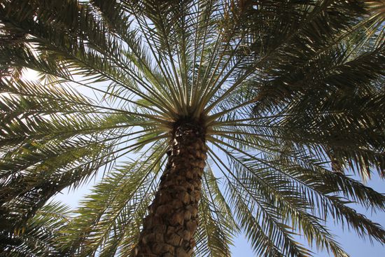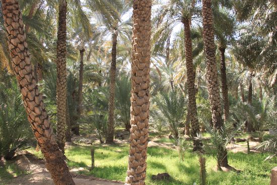 In Al Ain machten wir Pullerpause in einer Mall, die auch recht groß ist, aber bei weitem nicht an die Dubais heran reicht. Immerhin war eine Eislaufbahn integriert. Die kurze Suche nach einem günstigen Objektiv blieb auch hier ergebnislos. Weiter ging's zur Al Ain Oasis. Einer Oase mitten in der Stadt, einem riesigen Dattelpalmenhain. Im Reiseführer war nachzulesen, dass solche Oasen aus 3 Bepflanzungsebenen bestehen. Am Boden wachsen die Gräser und Kräuter, die Menschen und Tiere benötigen. Darüber angepflanzt sind Obst und Gemüsesorten und als Schutz und Schattenspender fungieren die riesigen Dattelpalmen. Mit etwas mehr Zeit hätten wir diese Oase sicherlich noch intensiver erkundet. So blieb es bei einem kurzen Spaziergang durch den Dattelhain. Herrliche Ruhe, Kühle und Vogelgezwitscher mitten in der Stadt, hat uns gut gefallen.