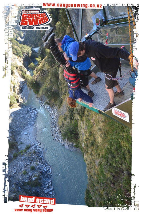 In Queenstown selbst kann man wahrscheinlich Unmengen an Geld liegen lassen. Mir gehts allerdings nicht so gut und ich quartiere mich in einem Hostel ein, das Gratis-Wifi hat und beschließe mich auszukurieren. Was trotz allem sein muss, ist mein heiß ersehnter Canyon-Swing ... ach ... nur richtiges Fliegen kann schöner sein . Die Crew ist eine verrückte Truppe und reißt einen Witz nach dem anderen. Angst kommt zwar auf, sie wird teilweise durch die Aussagen der Betreuer noch verstärkt doch gleichzeitig auch dermaßen ins Lächerliche gezogen, dass keine Zeit für ernsthafte Sorgen bleibt. Ich springe gleich zwei mal. Bei einem Tandemsprung darf man noch ein weiteres mal solo gratis springen. Ich schließe mich mit einem Holländer zusammen, wir lassen uns rückwärts fallen und mein Sprung allein soll aus einem Handstand passieren, wird aber dann zu einem verrückten Flip und ... aouuuuuuuuuuuuuuuu. GENIAL!