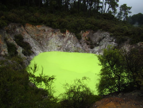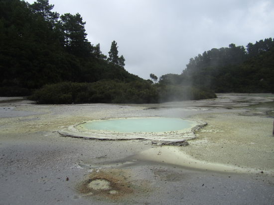 Zwischen Rotorua und Taupo liegt ein Park mit dem Namen Wai-O-Tapo. Auch wenn es sehr verregnet ist, bin ich froh, hier einen Stop einzulegen. Mein Gepäck wird verstaut und ich kann mich auf zu einen kalten aber sehr schönen Spaziergang machen.
