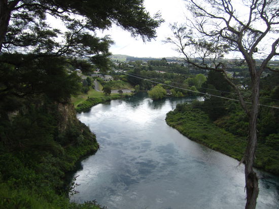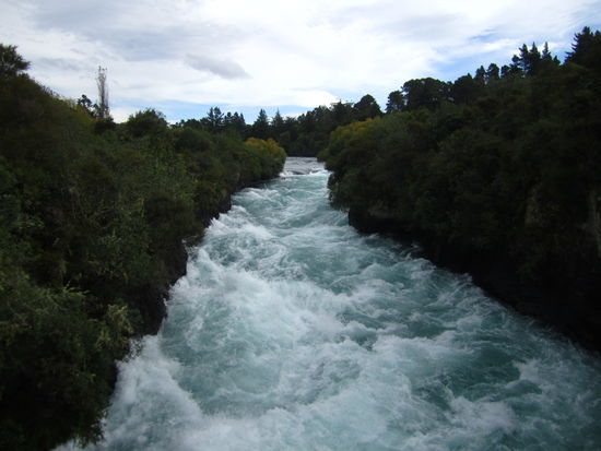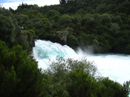 Das Tongariro-Crossing ist leider auf Grund eines Sturmes geschlossen und das 2-Österreicherinnen-1-Franzosen-Trio beschließt, sich in den Süden vorzuarbeiten. Die anderen beiden finden eine Mitfahrgelegenheit, ich entscheide mich für den Nachtbus nach Wellington und im Anschluss daran für die Fähre nach Picton. Es bleiben mir noch genügend Stunden, um mir die Huka-Falls anzusehen und nochmal die Sauna auszunützen (ach, wie sehr das mein Rücken und meine verspannten Schultern lieben ) und einfach mal nur auf der faulen Haut zu liegen.