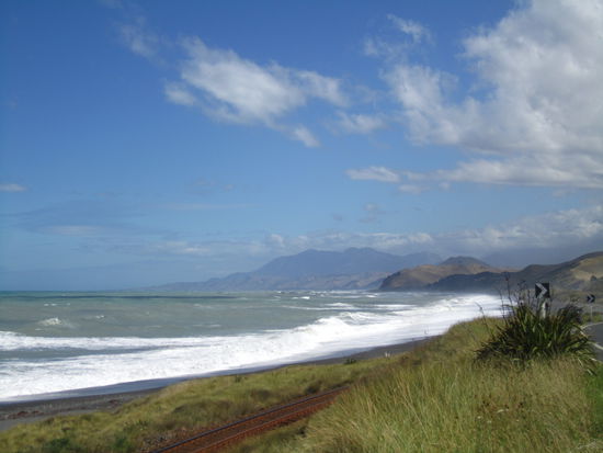 Ich habe keine Pläne, Isi will Richtung Picton, hat aber noch ein bisschen Zeit, also warum nicht, so spontan wie wir sind, fahren wir nach Kaikoura. Wale sehen wir keine, Delphine auch nicht, aber Berge, die ins Wasser fallen, Wellen, Gischt, die eine oder andere Seals Kolonie und eine wunderschöne Laufstrecke, bergauf und bergab, die Küste entlang.