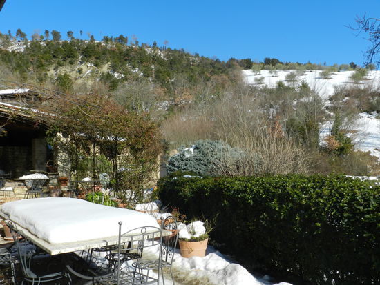 Salve so nochmal ganz langsam und zum mitschreiben . Prato di Sotto liegt 12 Kilometer außerhalb von Umbertide auf einem Berg in 570 Metern Höhe . Penny hat dieses alte kleine Dorf selbst restauriert . Es besteht aus 4 Gebäuden , Swimmingpool , verschiedenen Gärten mit Olivenbäumen und mediterranen Gewächsen und 9 Hühnern und einem Hahn , 4 Hunden mit Dogo dann also 5 , 3 Katzen , unzähligen verwinkelten kleinen Wegen und jeder Menge Schnee . Natürlich hat es über nacht geschneit und nachdem alle Tiere versorgt sind fangen wir erst mal an Schnee zu räumen . Wir versuchen so gut es geht alles vom Schnee zu befreien was noch nicht unter der Schneelast zusammengebrochen ist . Frau Holle läßt nicht locker und es schneit weiter . Penny bewohnt mit Ihren 4 Hunden Buster, Arthur, Edward und Foxi das Haupthaus. Alles wirkt im ersten Moment riesig . Offene Kamine und Feuerstellen ohne Ende . Speise , Wohn und Schlafzimmer in gewaltigen Dimensionen . Unser Haus ist da schon ein Bißchen überschaubarer . Studio mit Raumteiler und seperatem Bad und Kingsize bed mit Kissensammlung und Heizdecke . Leider hatte Frau Radford Young im Dezember ein kleines Feuer in Ihrem Haus so das der Haupt Kamin der auch am meißten Wärme spendet im Moment nicht zu gebrauchen ist . Mit Gas und elektro Heizer wird versucht so gut wie möglich einzuheizen ,was im Moment auch noch einigermaßen gelingt . Penny ist die kälte nicht gewohnt und so ist das Hauptthema den ganzen Tag das Ihr kalt ist und sie versucht verzweifelt ein Zimmer nach dem anderen warm zu bekommen . Normalerweise hat es im Winter tagsüber Plusgrade und in der Nacht vielleicht mal etwas unter Null . Nach einer warmen Suppe mitgebrachtem Frankenwein und Äppelwoi , Blumenkohlauflauf und selbst gebackenem Brot geht der Tag langsam zu Ende also Heizdecke an und Gute Nacht !!!!!!!
