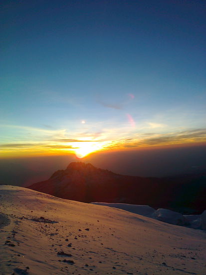 Wir waren gegen Mittag im letzten Camp, dem Barafu auf 4600m angekommen. Traditionell wird der Gipfel gegen Mitternacht des selben Tages in Angriff genommen. Etwa 6-7h braucht es, um Ihn zu erreichen und den Sonnenaufgang ganz oben zu genießen...sofern man nach den Strapazen noch dazu in der Lage ist...das heißt, etwas essen und relaxen, früh hinlegen, kurz vor Mitternacht wieder aufstehen und losgehen...so hoch die Füße tragen....