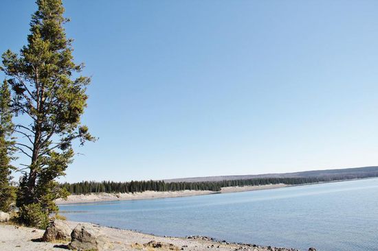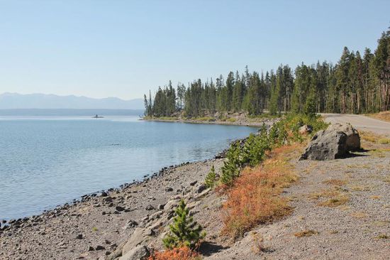 Tags darauf fahren wir dem Yellowstone Lake auf 2357 m Höhe entlang...