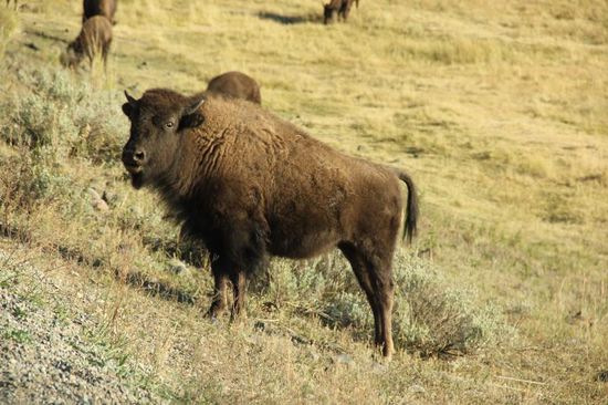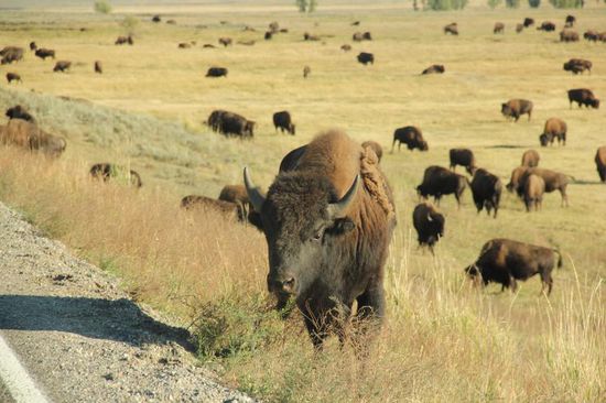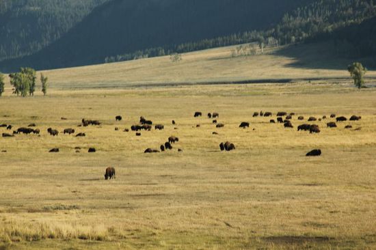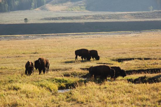 Das Hayden Valley ist wirklich sehr schön...; interessant, wie die Bisons in der Nähe des Geisirs lagern...