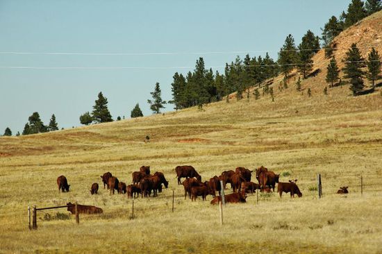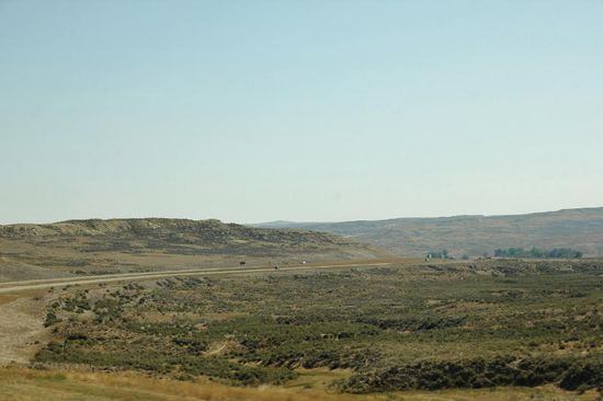 ...zum Turm des Teufels Devils Tower...; der gut 260 m hohe Turm ist ein alter Kraterschlund aus hartem Basalt, dessen Ummantelung aus Asche im Laufe der Jahrtausende von Wind und Wetter abgetragen wurde...; ein Anblick wie aus einer andern Welt - was dem Teufelsturm schon öfters die Rolle als Landeplatz von Ausserirdischen in Sciencefiction-Filmen beschert hat...