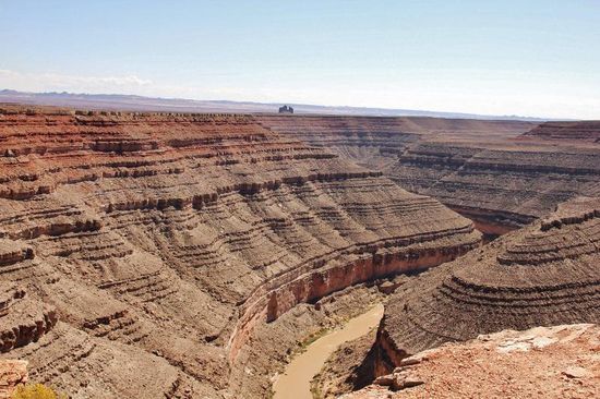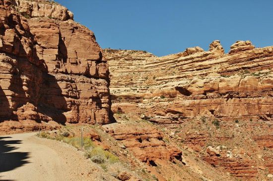 Beim Mexican Hat biegen wir ab und fahren nach Goosenecks (Gänsehälse...)