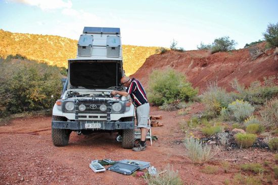Wir sind schön am Aufräumen..., da kommt ein Navajo angefahren und verlangt $ 20.- für's Übernachten...; wir bezahlen und diskutieren einwenig über Land und Leute...; insgeheim können wir denken was wir wollen, aber wir finden, die müssten auch lernen etwas zu bieten, statt nur zu kassieren...; zudem haben wir nirgends soviel Schmutz, weggeworfene Flaschen und Bierdosen am Strassenrand gesehen...! Sorry, uns beschäftigt das eine ganze Weile... (nicht speziell wegen den $ 20.-...!)
