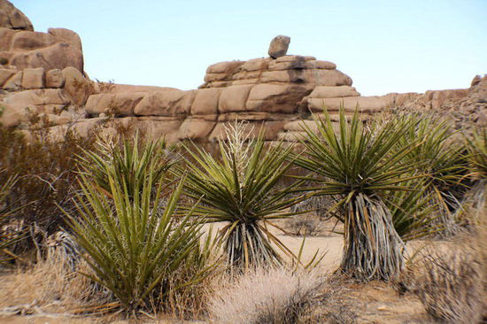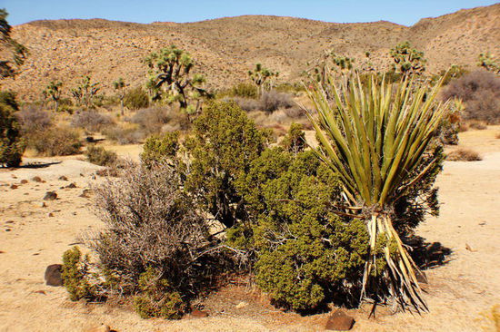 Die auffälligsten Pflanzen sind die seltsamen anmutenden Josua-Palmlilien (englisch Joshua Tree), die ausschließlich in der Mojave-Wüste im Nordwestteil des Parks vorkommen und ihm seinen Namen gaben. Der Joshua Tree ist ein wichtiger Bestandteil des regionalen Ökosystems und liefert vielen Wüstentieren Nahrung und Schutz. Die Pflanzen, die aussehen wie Kakteen, aber zu den Liliengewächsen gehören, werden bis 18 Meter hoch und bis zu 900 Jahre alt. Ihre Blütezeit ist im April und Mai. In der Mojave Wüste gibt es sehr viele dieser Bäume, aber in tieferen Lagen ist die Vegetation eher vom Kreosotbusch geprägt.