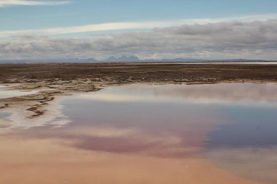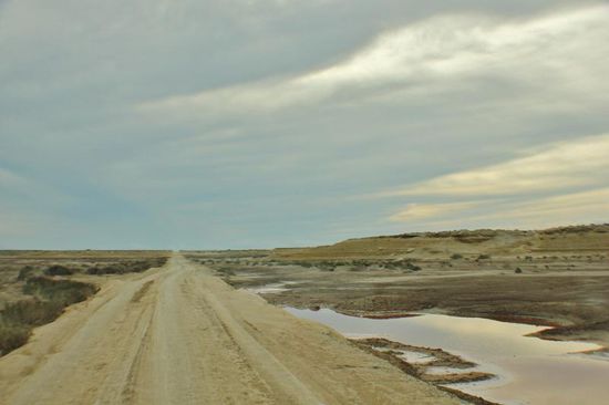 Mitten durch die Lagune führt eine Piste...