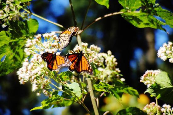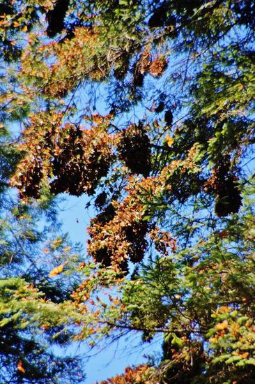 Die Monarch-Falter in Michoacan, Mexico treffen Ende Oktober, anfangs November hier ein...; viele haben einen Flug aus Kanada oder den USA hinter sich...; pro Tag fliegen sie rund 120km - insgesamt sind es bis 4500km...!