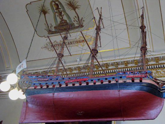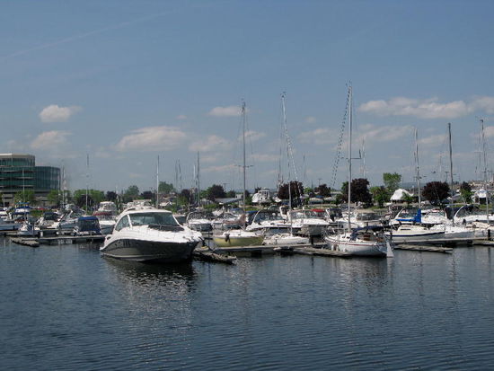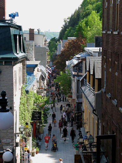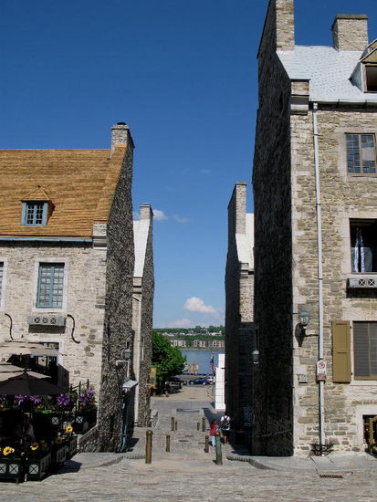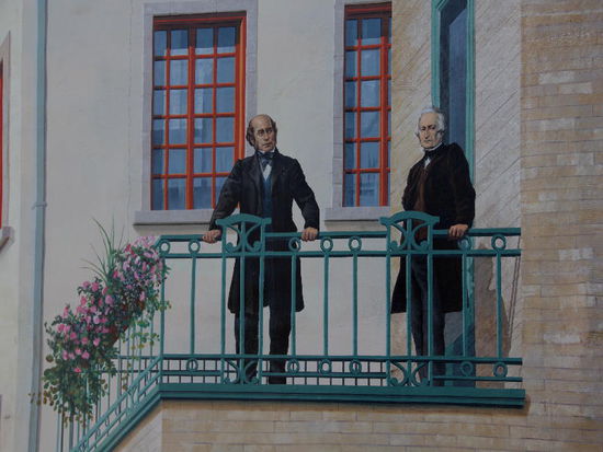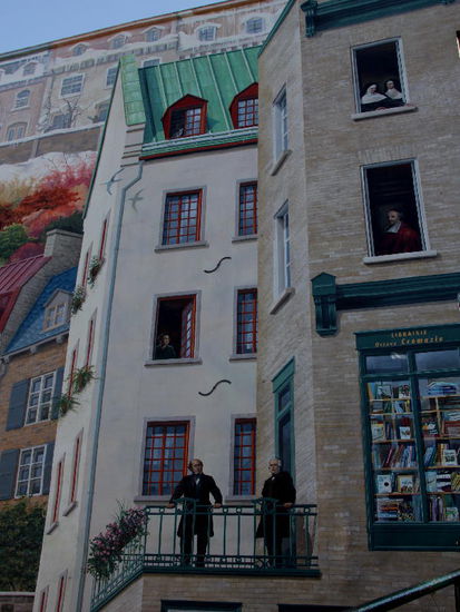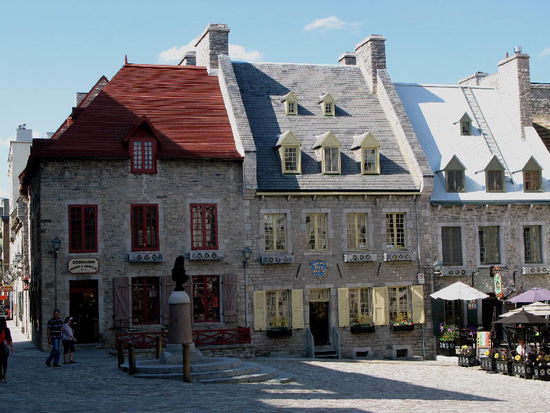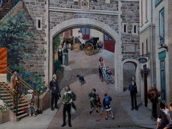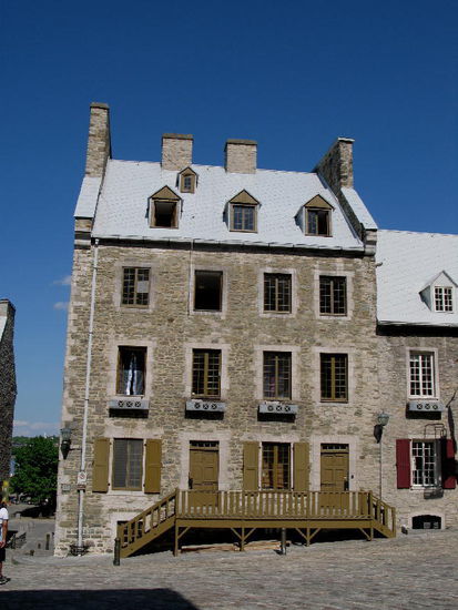 Beim Place Royale...; ein Frachter fährt auf dem St. Lorenz-Strom...; wir verziehen uns zuerst in ein Museum...; schauen uns einen Film 3-D an... und durchstreifen die geschichtlichen Vorgänge...; na, ja - Kathrin hat's gefallen, mir selber...