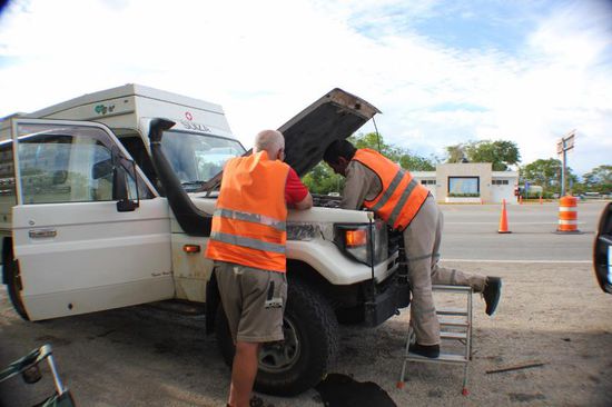 Wir beratschlagen kurz, wie wir am schnellsten zu einem neuen Auto-kühler kommen können. Die nächste Toyota-Vertretung ist in Merida!
