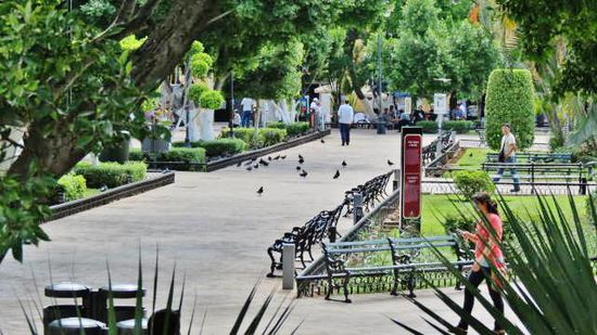 Ausblick über den schattenspendenden Zocaló...