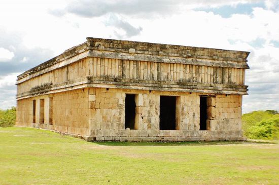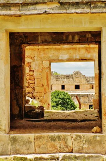 Die Anlage in Uxmal wir beherrscht von der Pyramide des Zauberers...; diese Pyramide beinhaltet 5 Tempel...