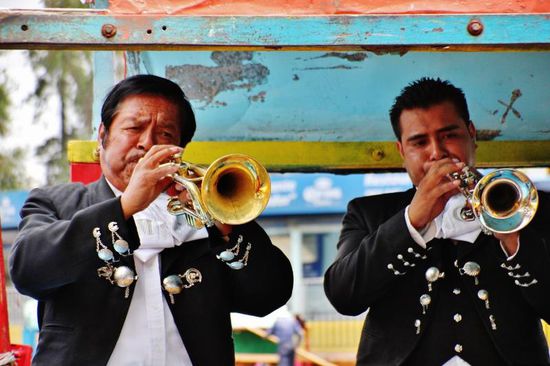 Und es dauert auch gar nicht lange - schon treibt ein Boot mit Mariachi-Musikern auf uns zu...