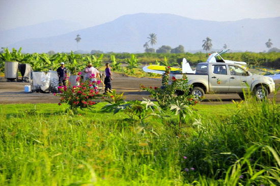 Gut ausgeruht fahren wir am nächsten Morgen weiter...; schon bald wissen wir, wozu der naheliegende Flugplatz dient...