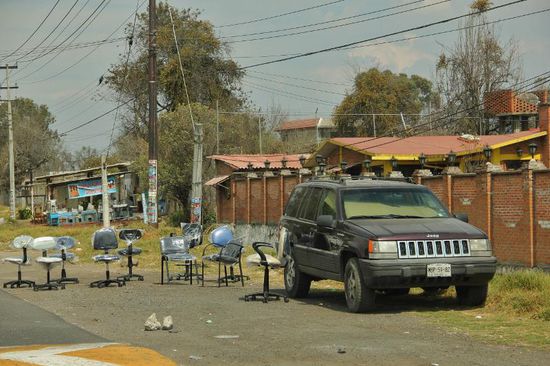 Es ist kalt und windig dazu...; also beschliessen wir, ein neues Ziel zu suchen...; wir fahren nach Tlaxcala...